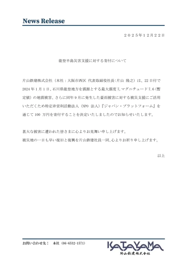 能登半島災害支援(地震・豪雨)に対する寄付について