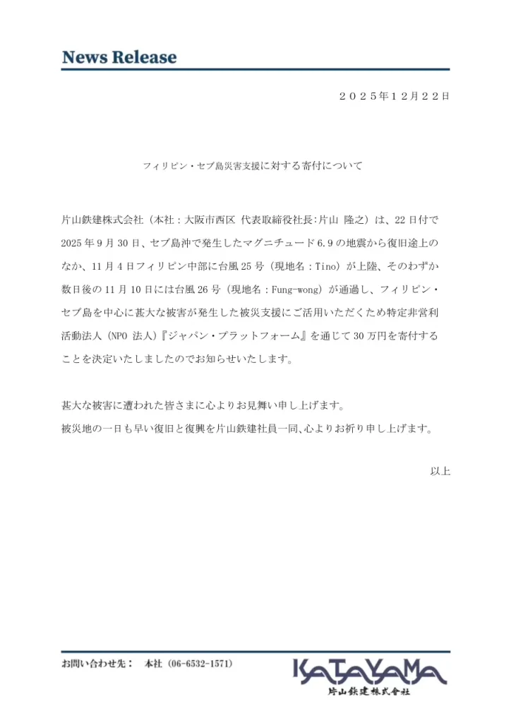 フィリピン・セブ島沖地震・台風被災者支援に対する寄付について